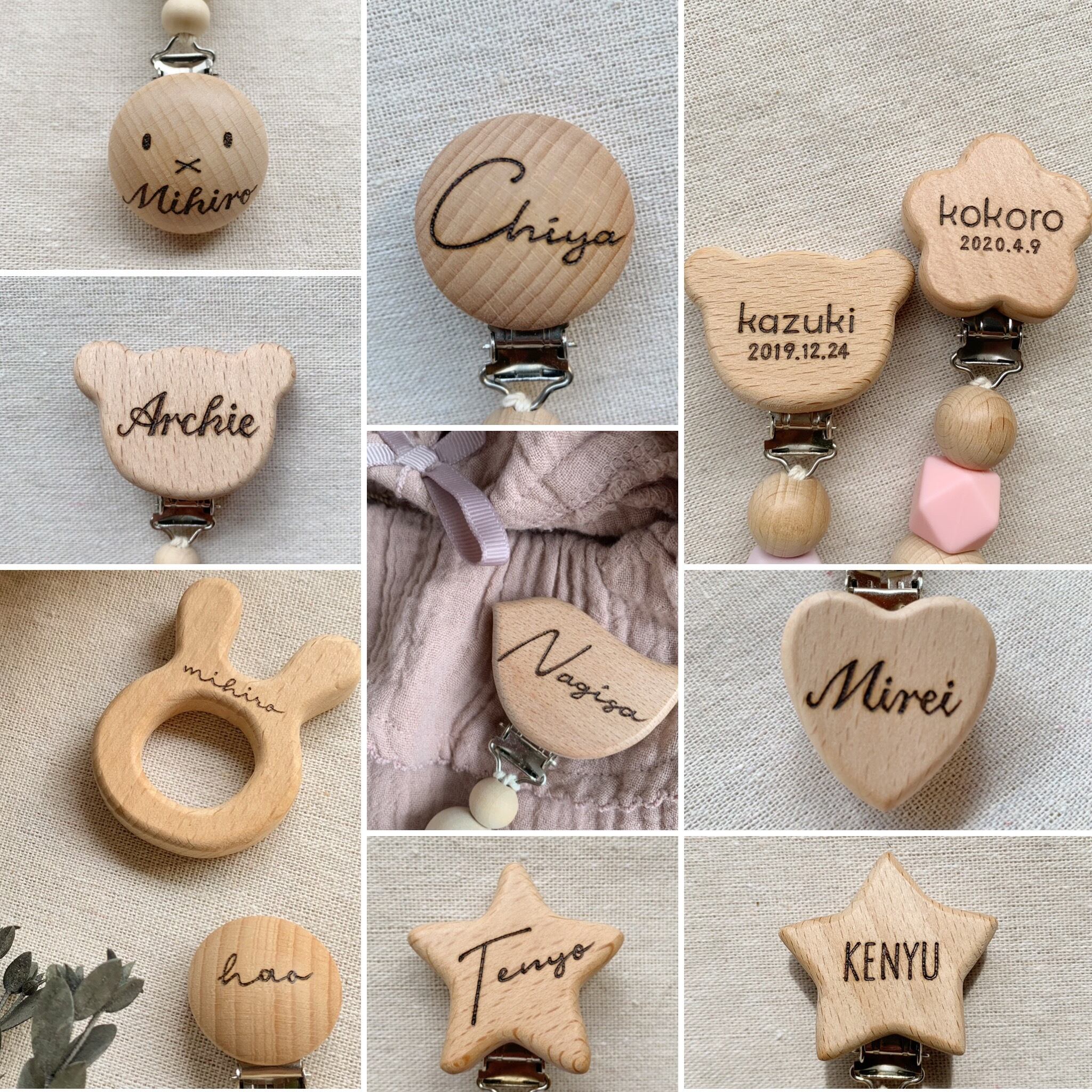 クリップにはお名前を入れることができます。刻印をご希望の方は、【お名前の刻印】のオプションを「あり(¥350)」と選択して頂き、必ずお名前の記載をアルファベットにてお願い致します。